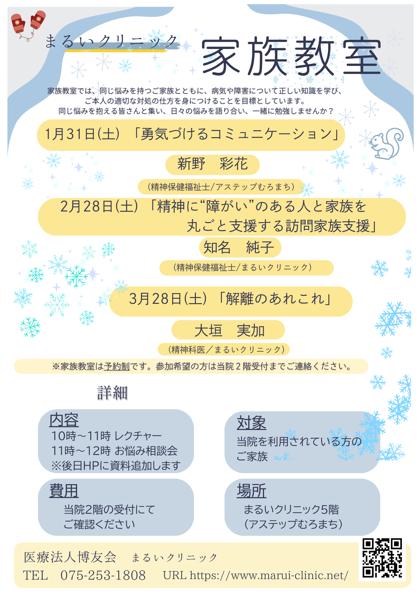 *大変申し訳ありませんが、参加対象者はまるいクリニックに通院されている方のご家族、ご本人に限ります。主治医にご相談の上、申し込んでください。
