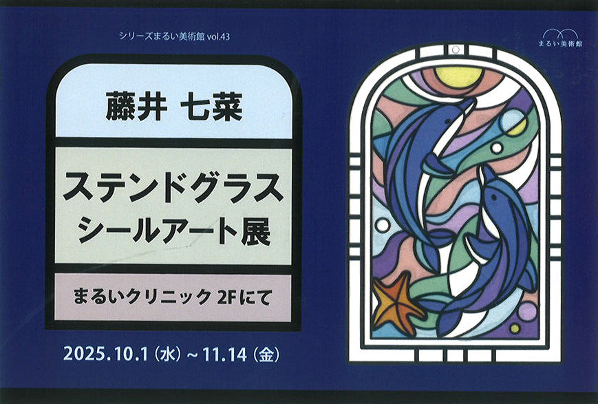 まるい美術館 まるい美術館vol.43 <1F>ロビー工事の為、今回の展示はありません。 <2F> 藤井 七菜ステンドグラス シールアート展 2025年10月1日(水)~2025年11月14日(金)まで。 1Fロビーと、2F受付前で開催しています。ご来院の際は、ぜひご覧下さい。 まるい美術館とは… 当院に通院されている方、通所されている方限定の展覧会です。 当院利用の方なら、どなたでも展示していただけます。ご興味のある方は、受付まで。