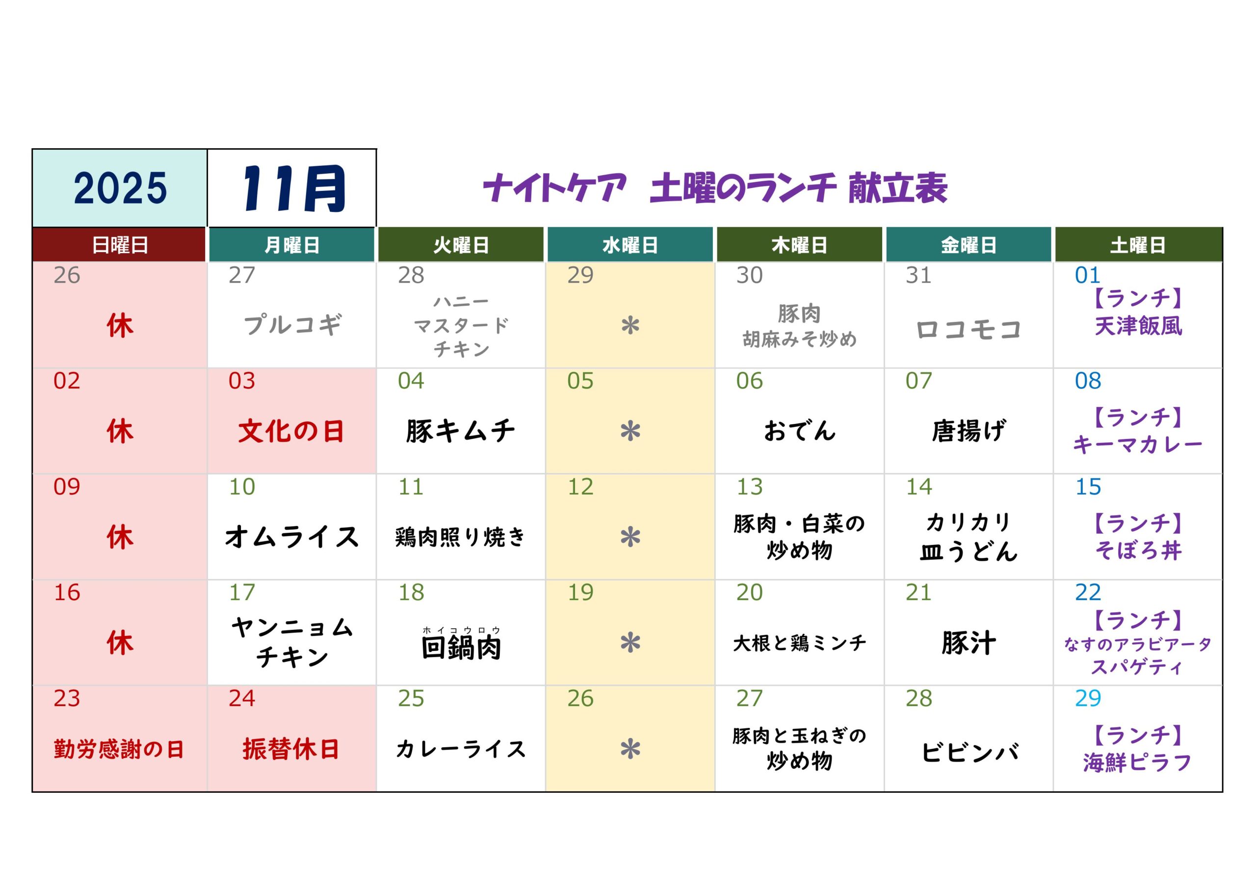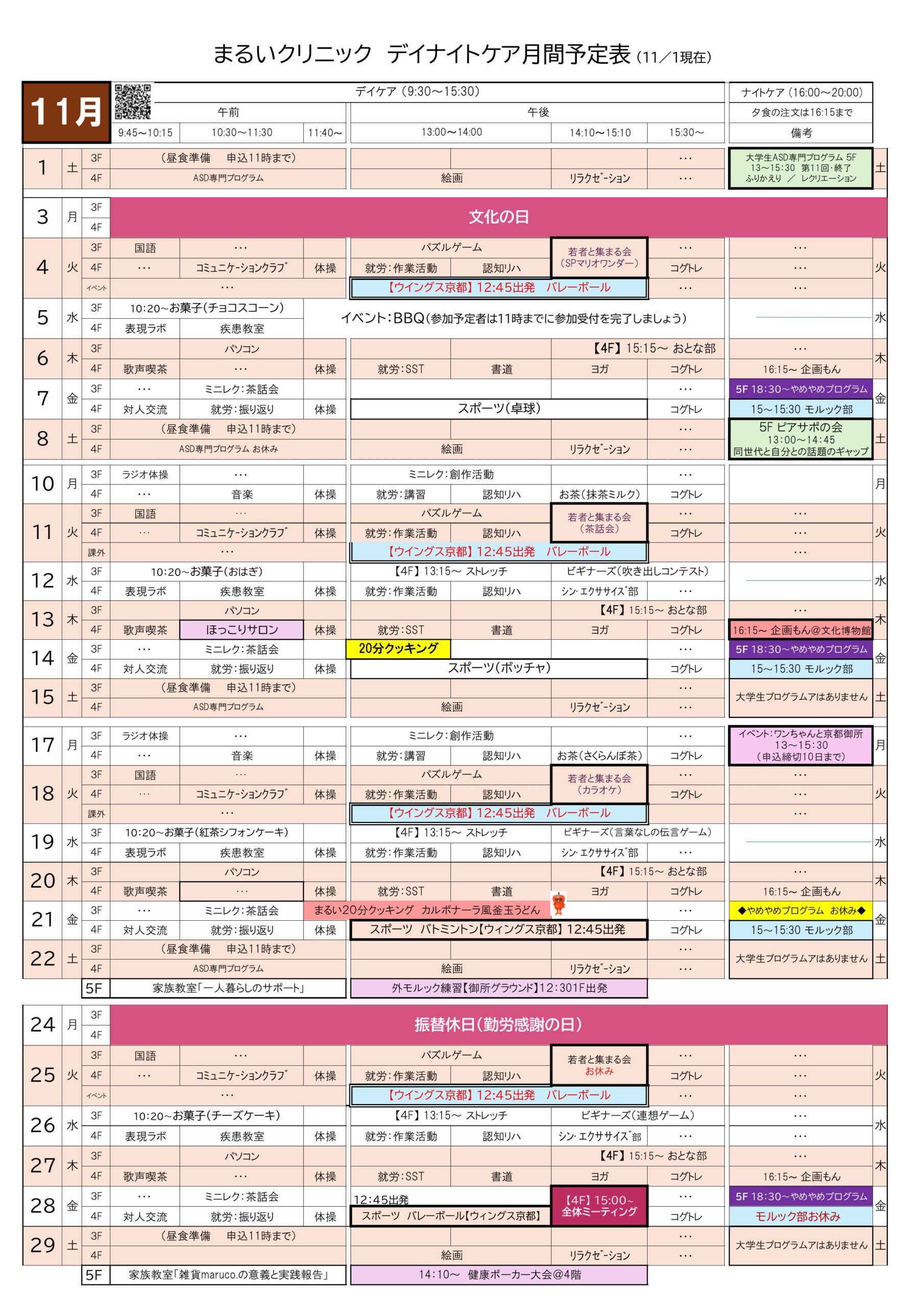 予定表(11月)